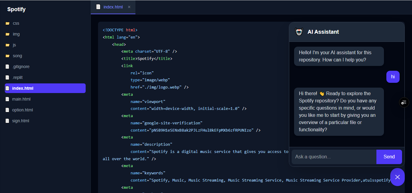 • Developed the AI-powered chatbot for answering questions about the code.